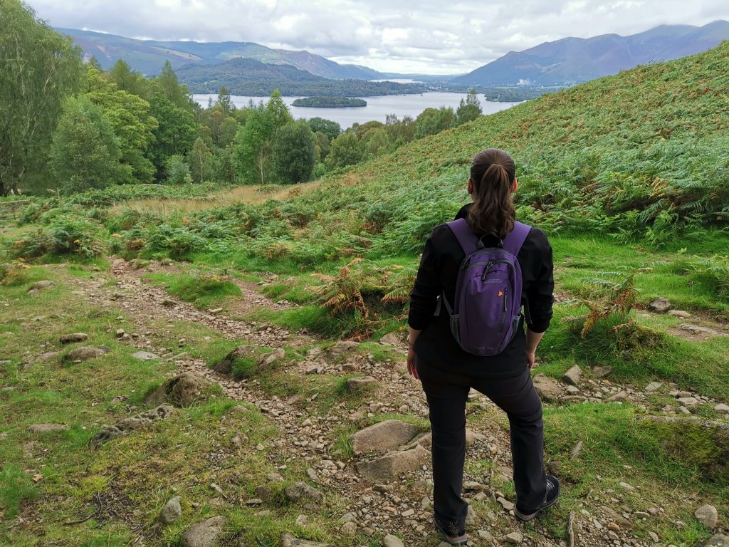 With our new found energy for climbing to a view, we returned to Derwentwater to walk Walla Crag. We parked at National Trust’s Great Wood car park and commenced our walk which hugged the shoreline of the lake before veering towards the road and through a fern covered path towards Ashness Bridge. We detoured to Surprise View and felt a real sense of accomplishment after reaching the view on foot having been passed by the Mountain Goat tour bus.